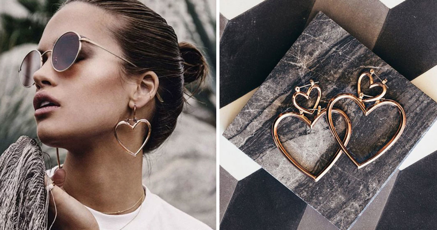 戴大耳環就非常吸睛!一副就搞定全身的搭配重點,選擇愛心圖案的款式增添個性女孩感。