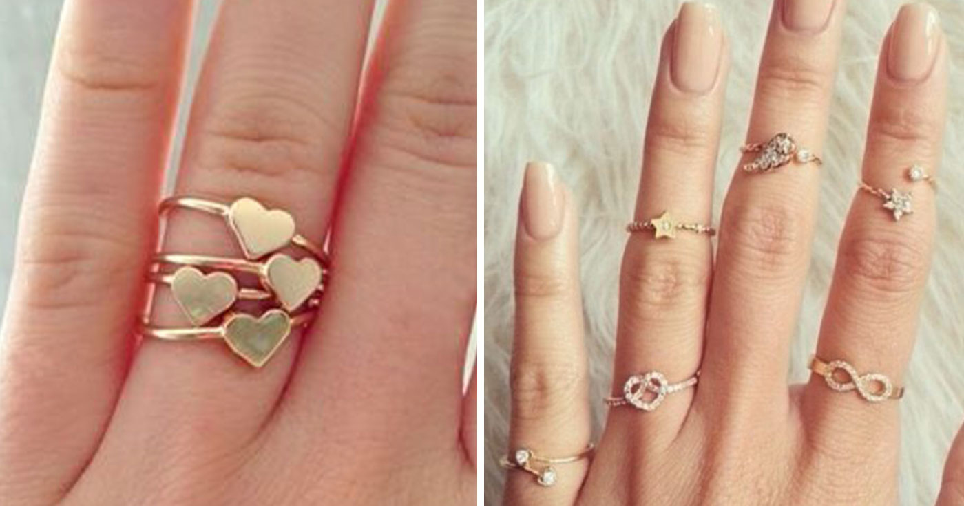 單戴一個愛心戒指小巧可愛,選擇2-3個戒指戴同隻手指上美度提升,整隻手多個戒指一起配戴超時髦!