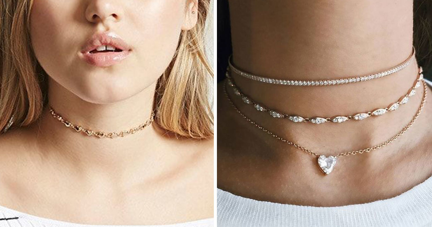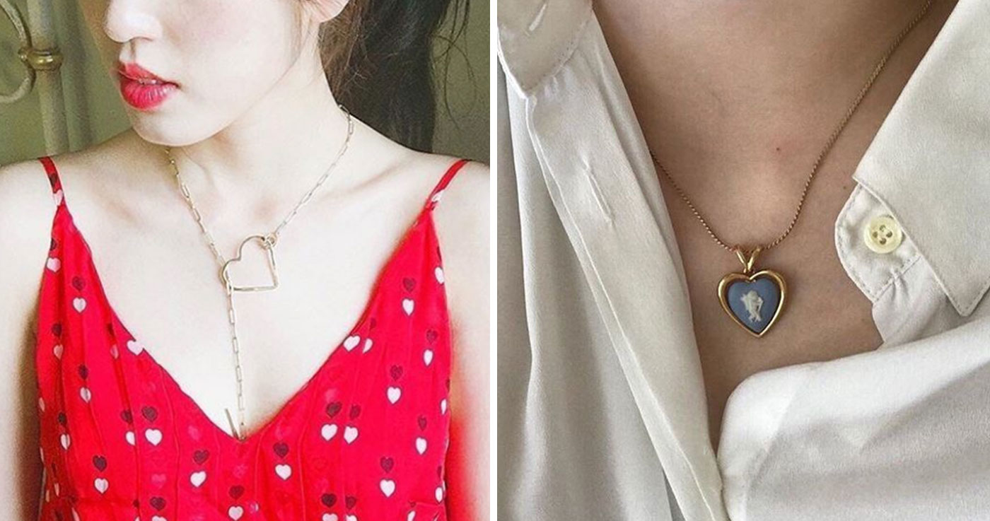 穿了露出鎖骨的上衣,再搭配一條愛心細項鍊吧!鎖骨是最骨感美的地方,選長度適中的細項鍊,除了能修飾頸脖線條,落在鎖骨間的長度搭配V領上衣,還能創造V臉的尖臉效果呢!