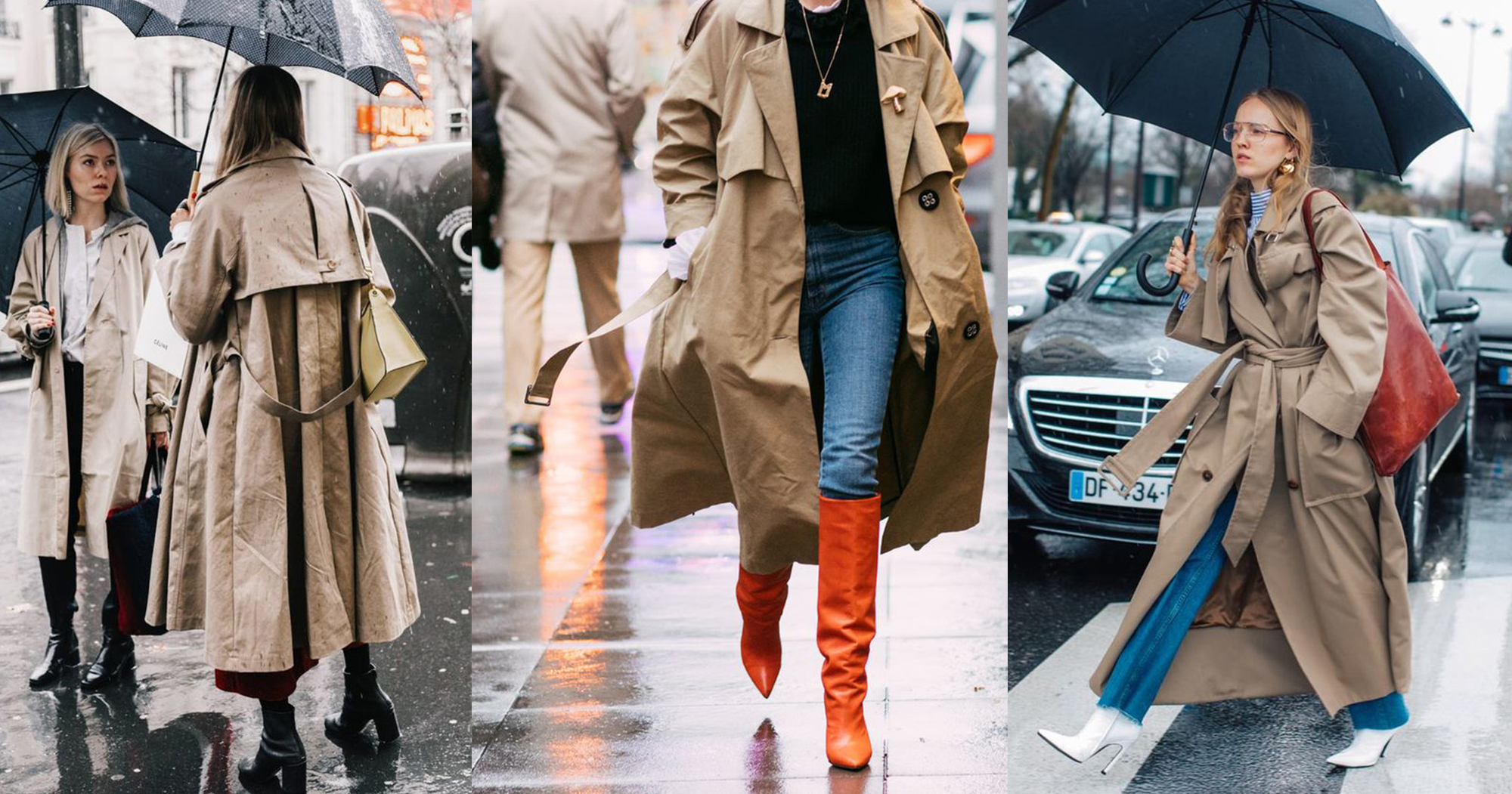時尚指數破百的雨天搭配就是:風衣和靴子!